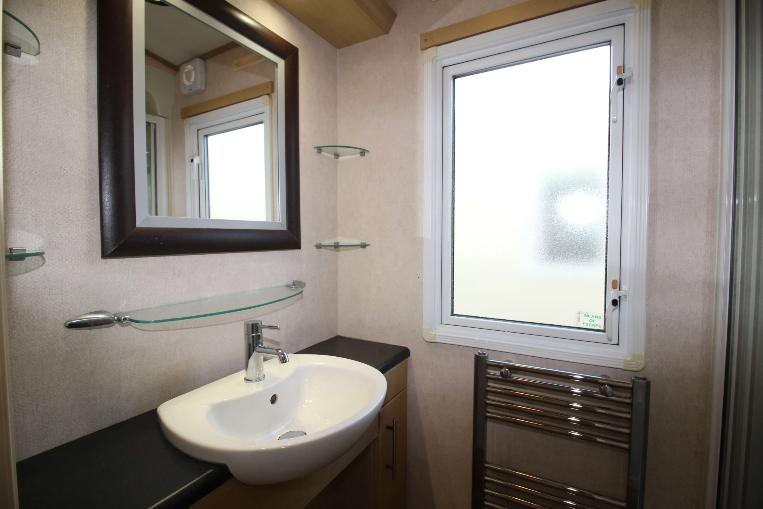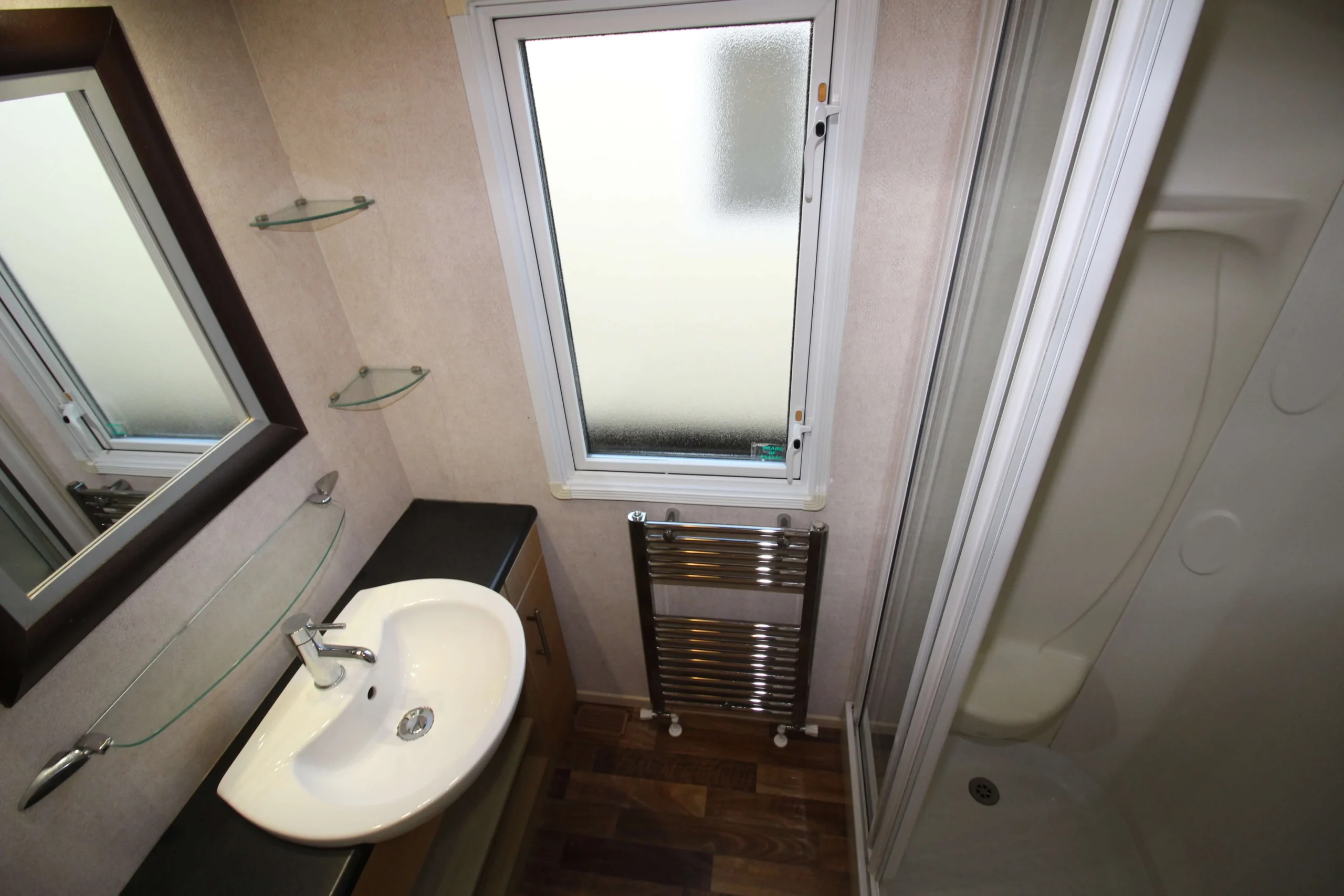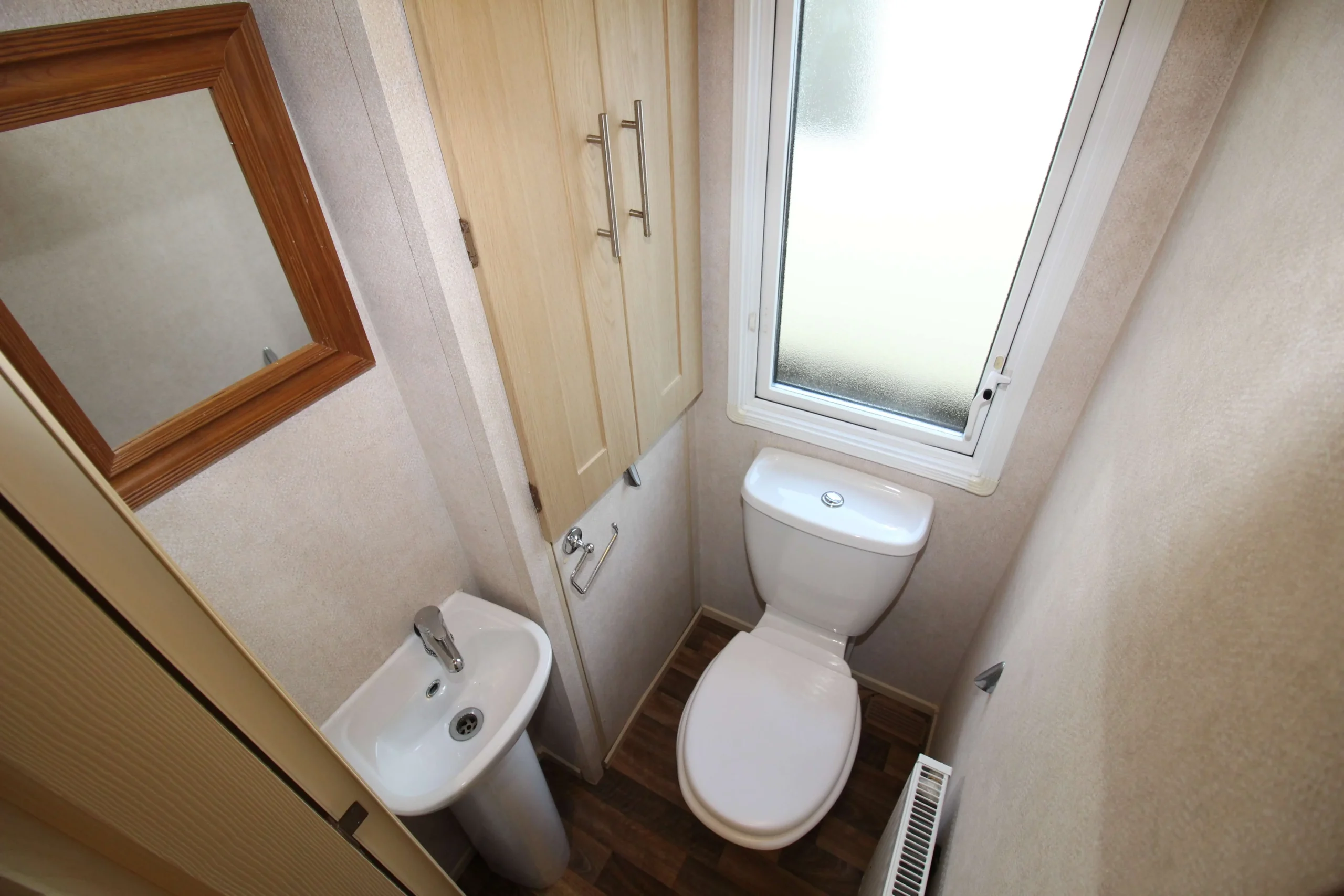 This mobile features three well-proportioned bedrooms, giving everyone their own comfortable space. The main bathroom serves the bedrooms, while a second toilet with wash hand basin in the hallway adds real convenience for busy households.