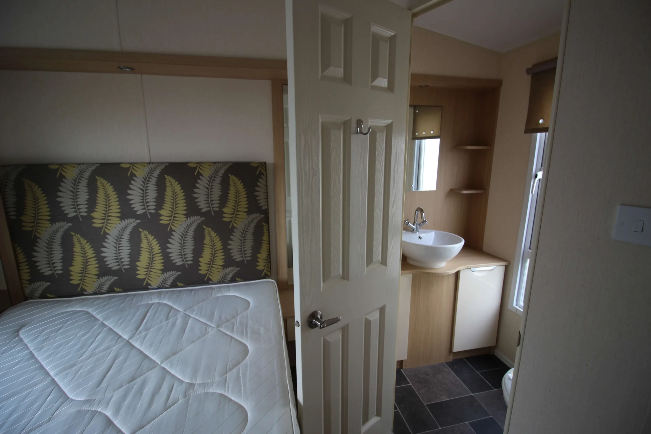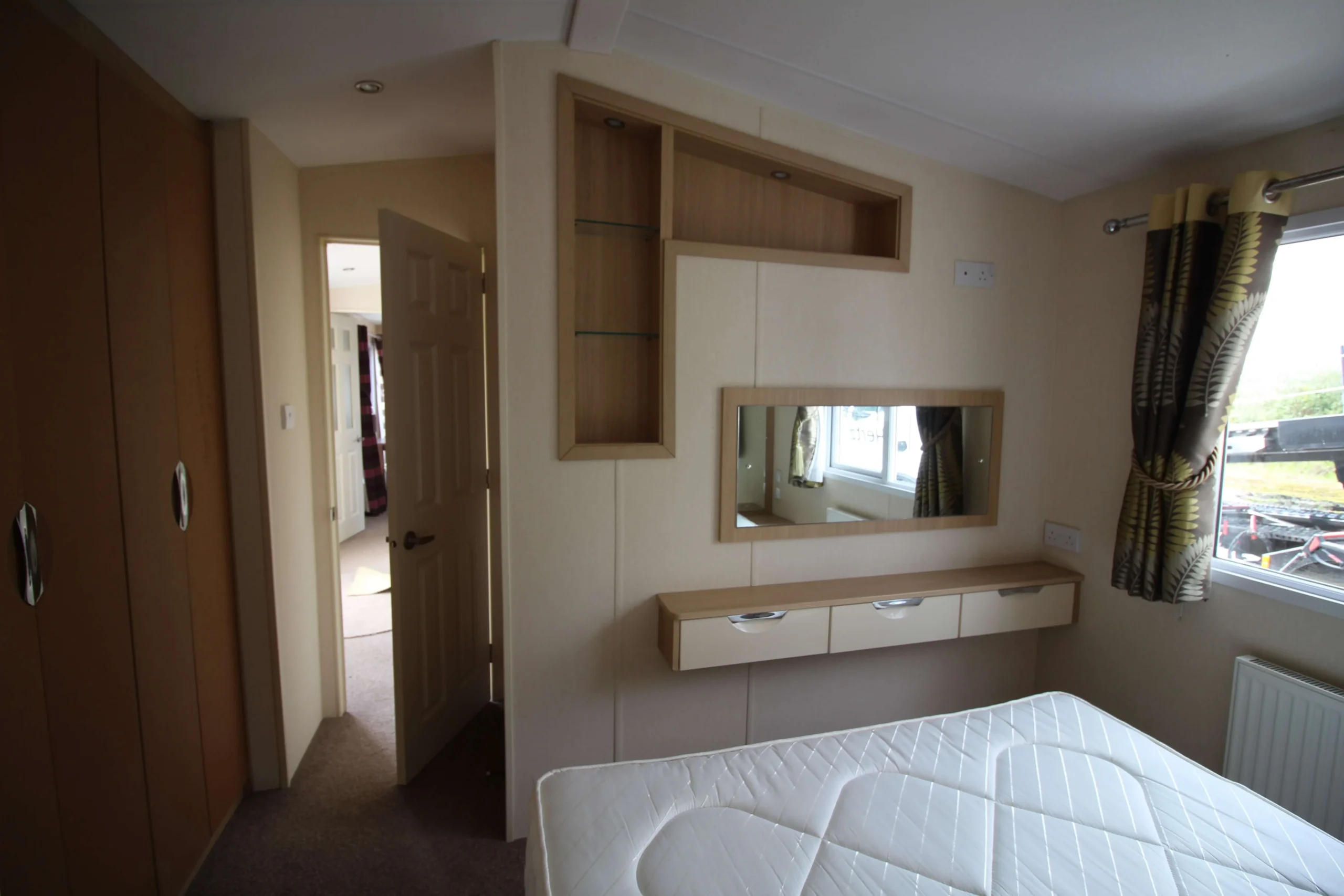 Moving into the hallway, you will find a handy storage closet for coats and shoes. This small detail keeps the mobile organised and clutter free.