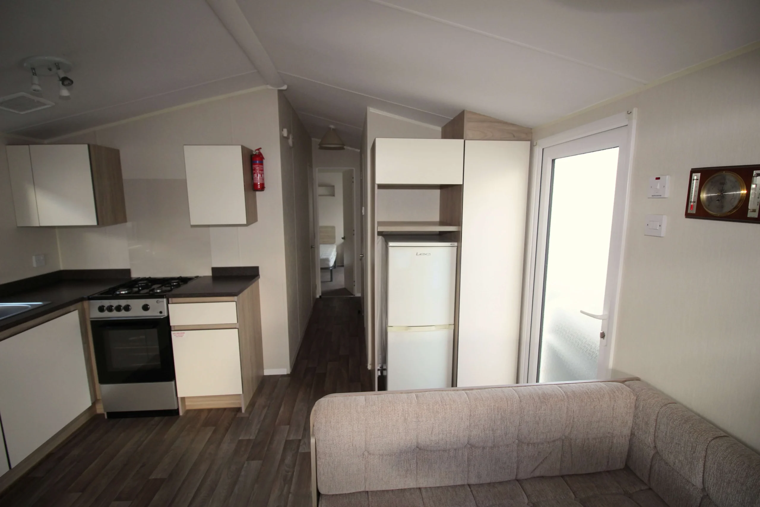 The kitchen keeps things simple and functional. It provides everything you need for day to day living or weekend breaks. Furthermore, the layout allows easy movement while cooking or entertaining.