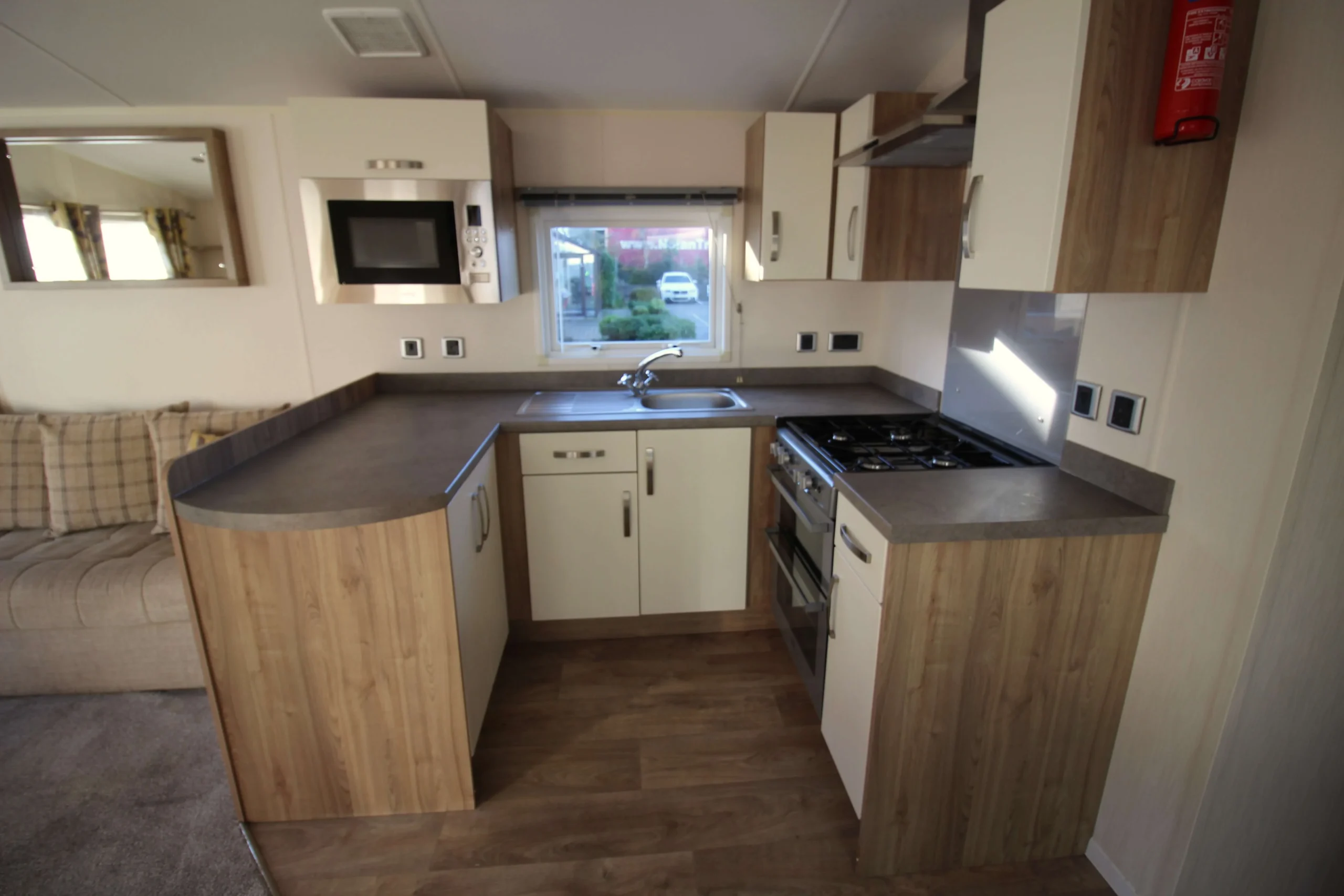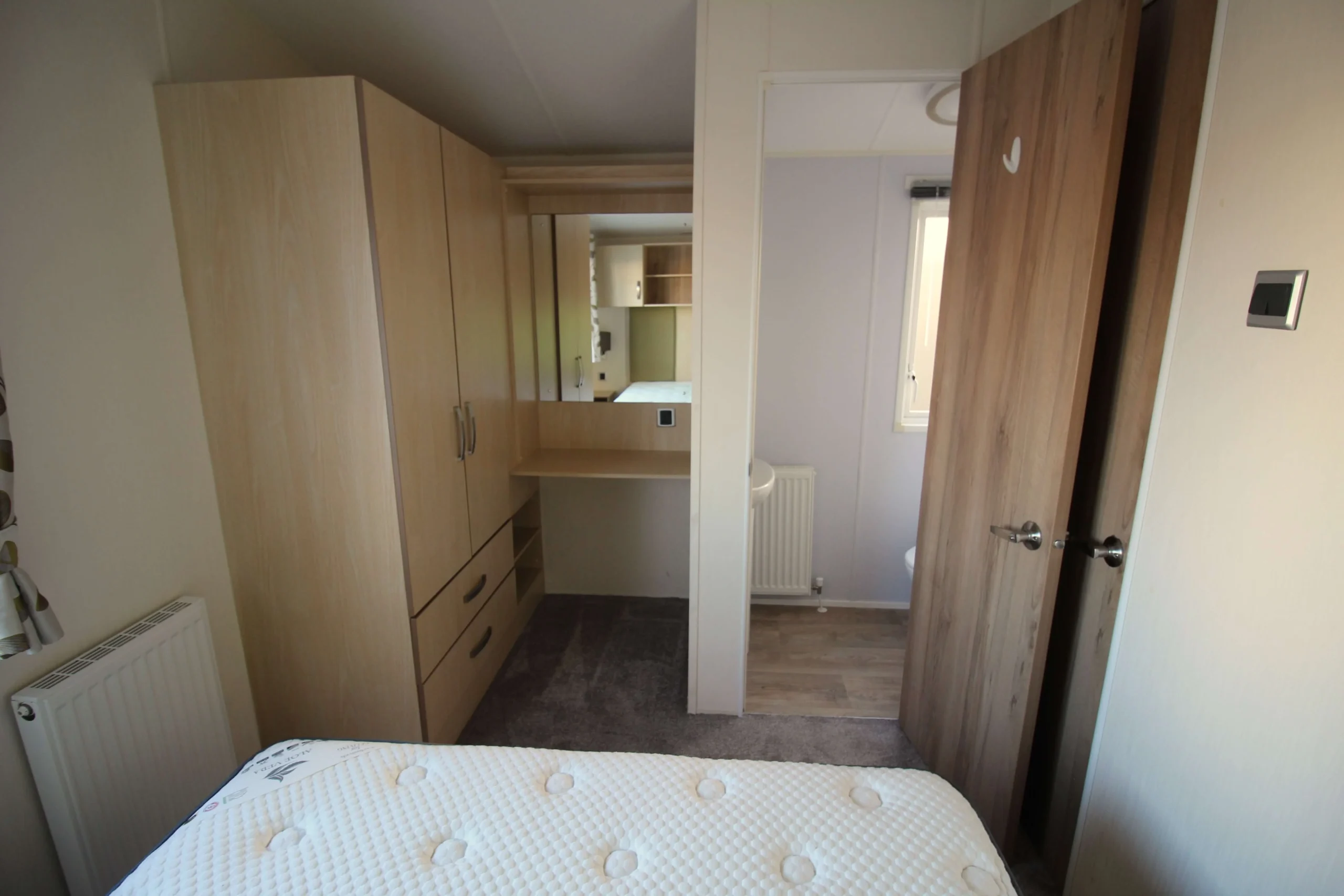 With three bedrooms, this mobile home offers great flexibility. The main bedroom feels warm and inviting with its generous storage and private en suite, giving you a peaceful space to unwind. The two twin rooms suit children, guests, or even additional storage if needed. Combined with the sofa bed, you have ample room for everyone.