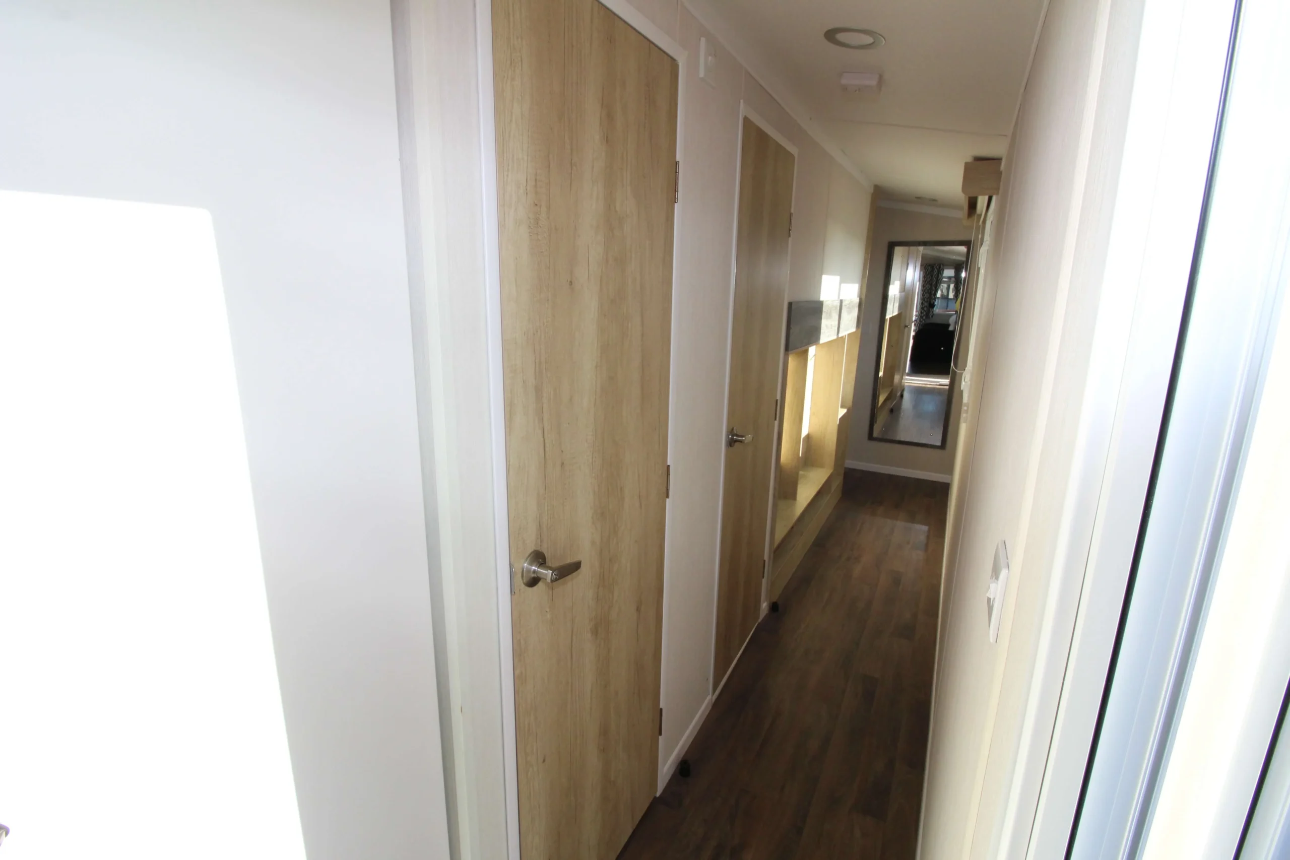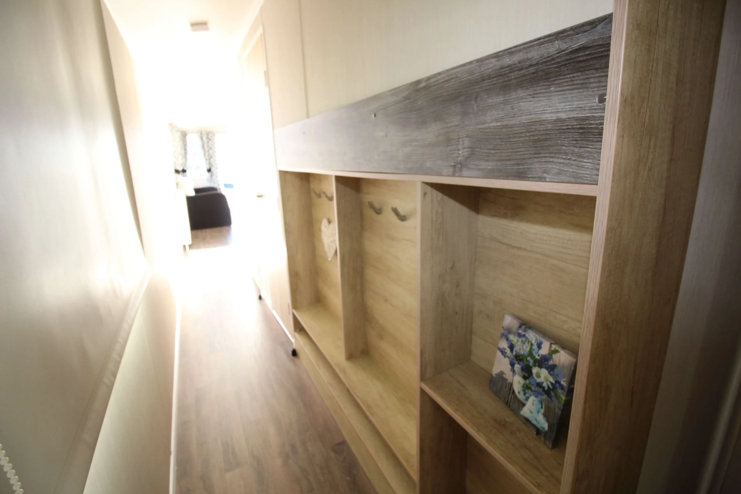 The hallway is another highlight. A large window brings in even more light, while extra space for coats and shoes keeps everything neat and tidy. This thoughtful layout makes life easier and the mobile feel bigger.